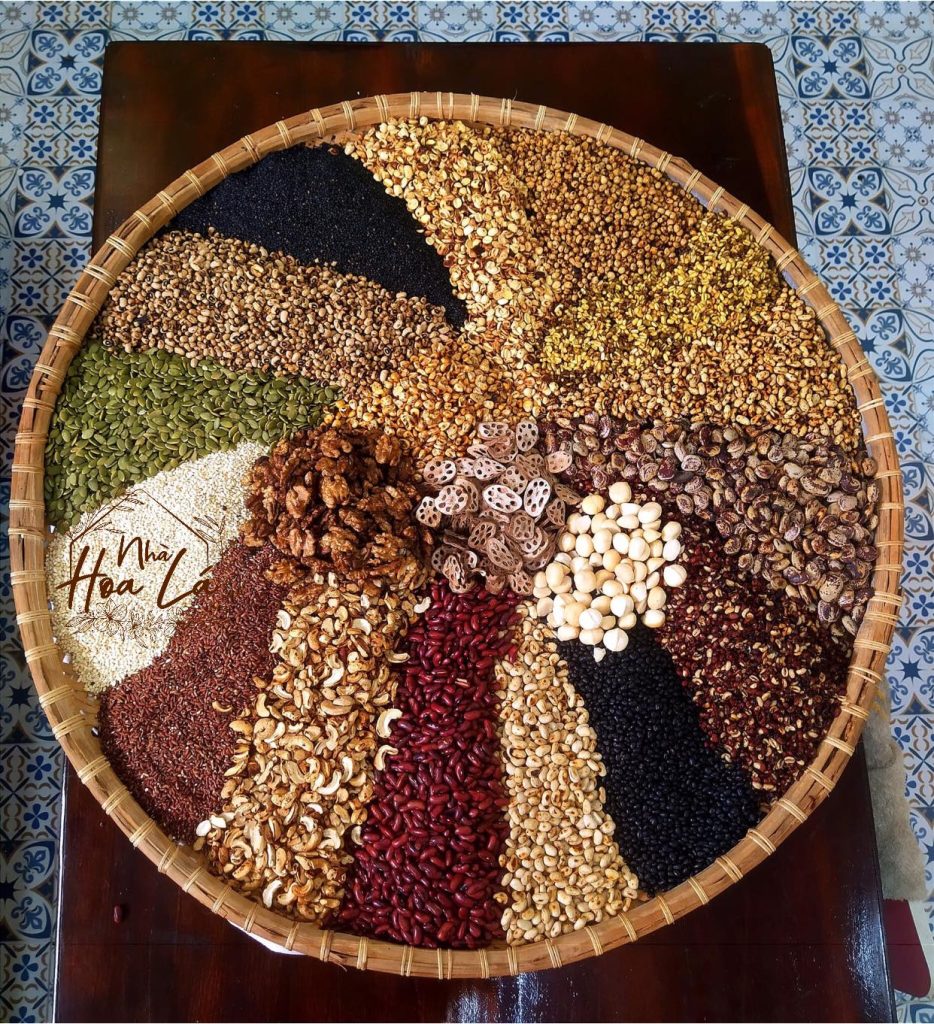 Bột dinh dưỡng của nhà tui được làm từ 20 loại đậu hạt theo mùa ủ nảy mầm và rang bếp củi rất kỳ công,.